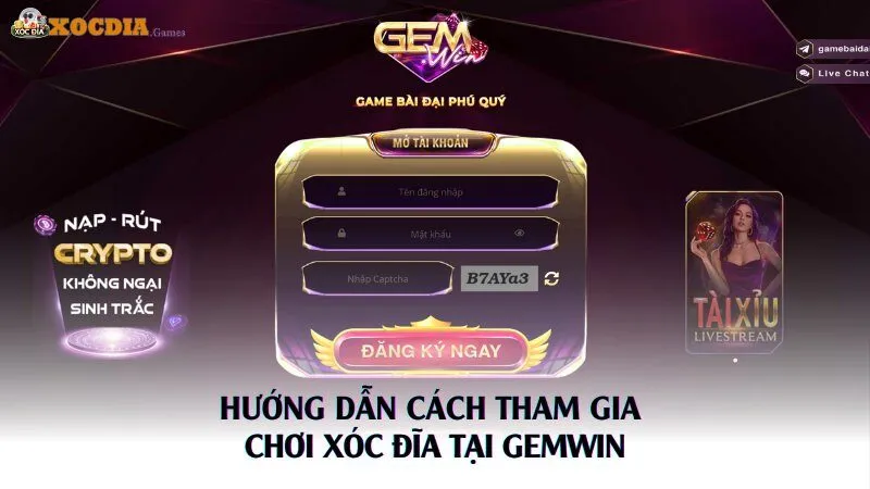 Không cần thao tác phức tạp, chỉ vài bước đơn giản là bạn đã có thể tham gia Xóc đĩa Gemwin dễ dàng mọi lúc, mọi nơi.